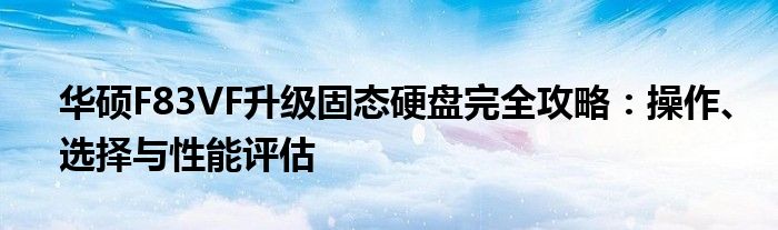 华硕F83VF升级固态硬盘完全攻略:操作、选择与性能评估