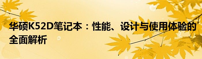 华硕K52D笔记本:性能、设计与使用体验的全面解析