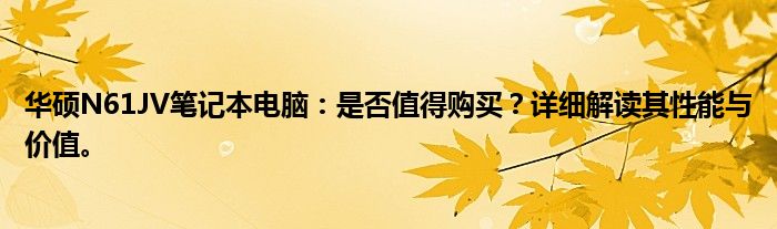 华硕N61JV笔记本电脑:是否值得购买?详细解读其性能与价值。