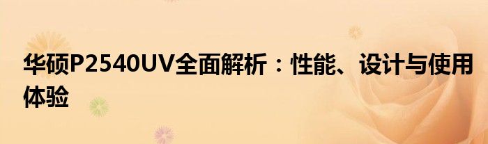 华硕P2540UV是一款功能强大的笔记本电脑,拥有出色的性能、设计和使用体验。本文将全面解析这款电脑的各项特点,帮助您更好地了解它的优势和适用场景。