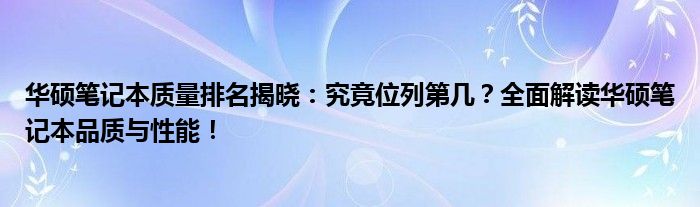 华硕笔记本在市场上一直备受关注,其中关于它的质量排名更是消费者关注的焦点。那么,华硕笔记本究竟在质量方面排名第几呢?本文将为您全面解读华硕笔记本的品质与性能,带您了解华硕笔记本在业内的表现。