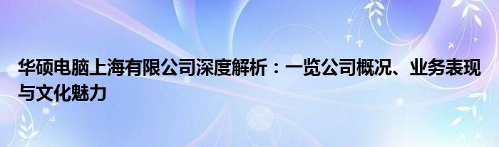 华硕电脑上海有限公司深度解析:一览公司概况、业务表现与文化魅力