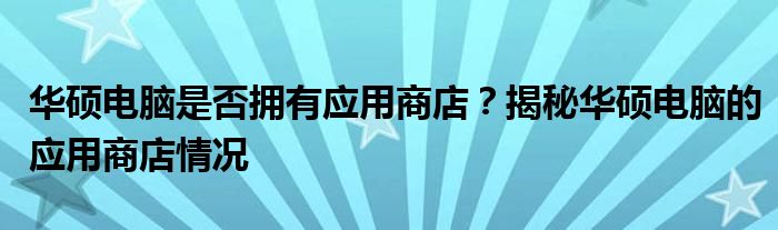 关于华硕电脑是否拥有应用商店的问题,我们可以明确回答:是的,华硕电脑确实有应用商店。