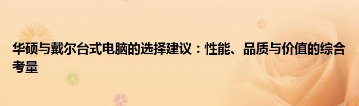 华硕与戴尔台式电脑的选择建议:性能、品质与价值的综合考量