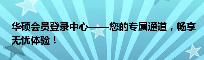 华硕会员登录中心——您的专属通道,畅享无忧体验!