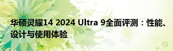 华硕灵耀14 2024 Ultra 9全面评测:性能、设计与使用体验