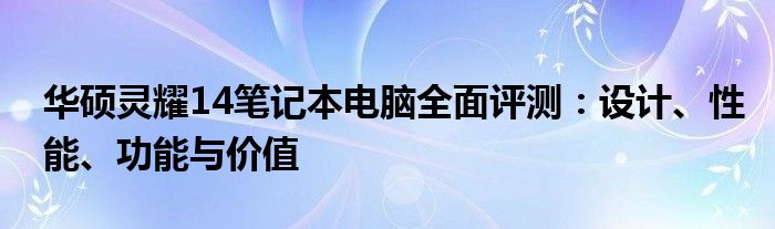 华硕灵耀14笔记本电脑全面评测:设计、性能、功能与价值