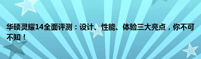 华硕灵耀14全面评测:设计、性能、体验三大亮点,你不可不知!