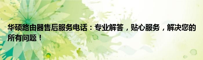 华硕路由器售后服务电话:专业解答,贴心服务,解决您的所有问题!