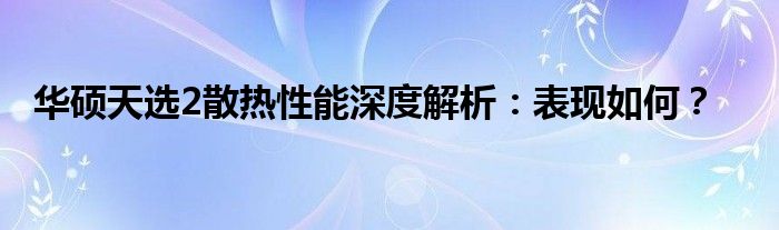 本文将详细介绍华硕天选2的散热性能,包括其设计理念、散热系统构成、实际表现以及用户评价等方面,旨在帮助消费者更全面地了解这款产品的散热能力。