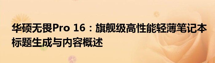 华硕无畏Pro 16:旗舰级高性能轻薄笔记本标题生成与内容概述